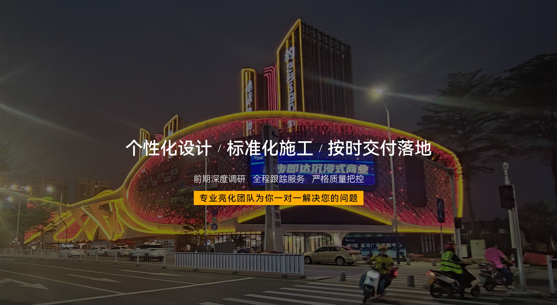 公司專注於聲(音響係統)、光(外立麵亮化)、電(LED顯示屏)的設計施工一體化(EPC),