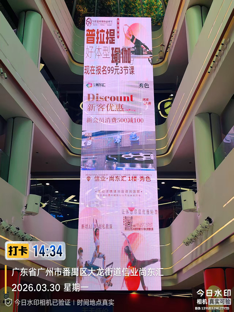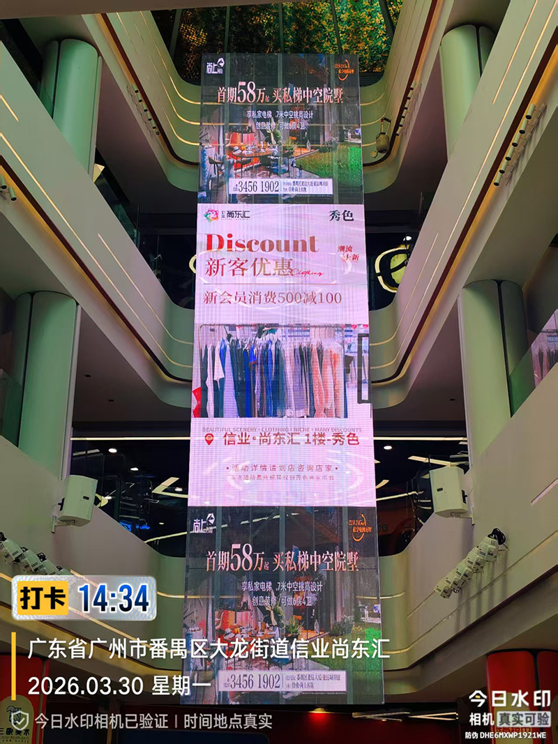 LED電動升降透明屏,同時滿足舞台、中庭、二樓、三樓等不同高度的顯示播放,一屏多能,幫助購物中心降本增效。